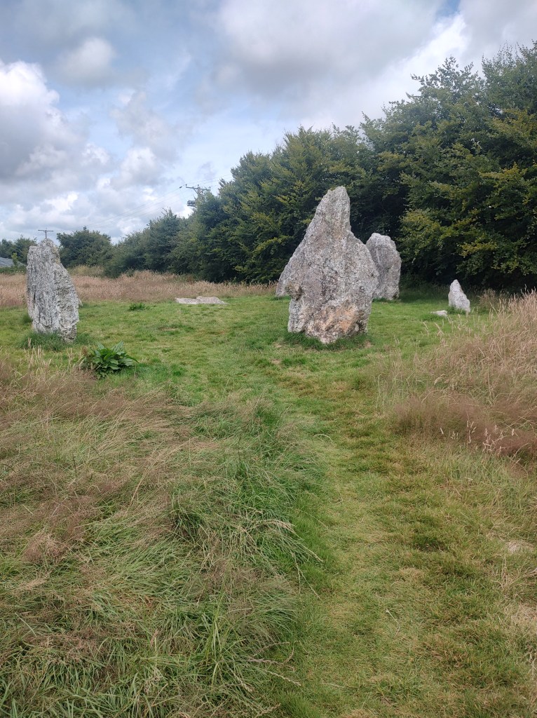 I approach the ring of eight granite, weathered monoliths with a tingle in my sternum. Thick with seams of pearly quartz, dressed in patches of hairy lichens and velvet moss. Hues of pink and grey run through the white rock. The tallest menhir reaches a metre above my head, the smallest shoulder height. Despite being the smallest stone circle in Cornwall, it boasts the grandest, largest stones.